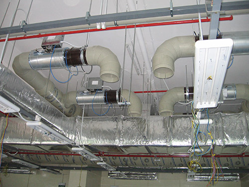 5) 實驗室風(feng)管(guan)在選(xuan)擇(ze)防(fang)腐(fu)蝕較好,硬度高的(de)材質。本(ben)工程涉及到所(suo)有風(feng)管(guan)均可(ke)采(cai)用防(fang)腐(fu)蝕性(xing)能好的(de)PVC/UPVC材質,風(feng)機(ji)全部為(wei)腐(fu)蝕性(xing)能好的(de)玻璃鋼風(feng)機(ji)。